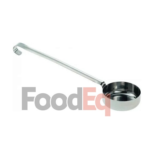 Половник имеет длину 340 мм и диаметр чаши 90 мм, что позволяет удобно дозировать соусы на коржи для пиццы. Вес половника составляет всего 170 грамм, что делает его легким и удобным в использовании.