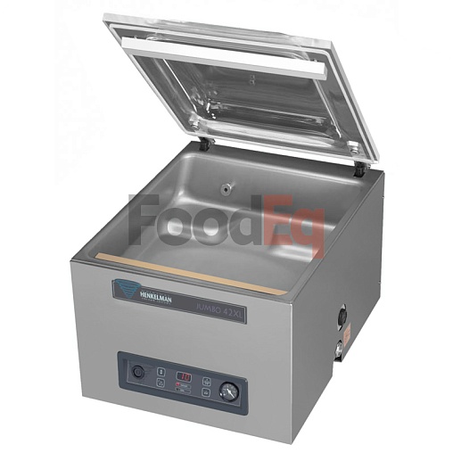 Настольный вакууматор Henkelman Jumbo 42 XL предназначен для профессиональной упаковки продуктов. Корпус полностью выполнен из нержавеющей стали. Аппарат оснащен цифровым управлением. Рабочий цикл от 20 до 45 секунд. Насос мощностью 16 м3/ч. Прозрачная крышка позволяет наблюдать за процессом упаковки. Размер камеры: 420х460х180 мм (ШхГхВ). Съемные запаечные планки длиной 420 мм.Технические характеристики